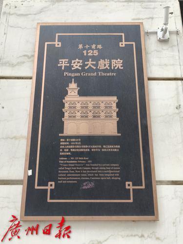 平安大戏院的铭牌。