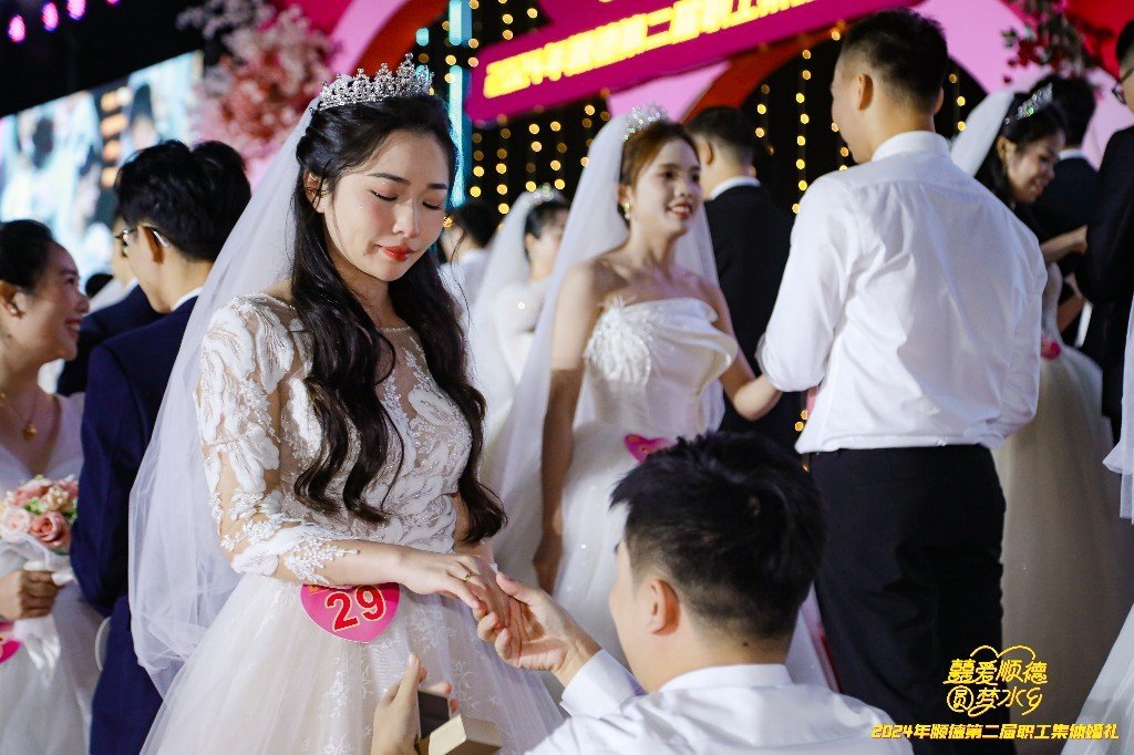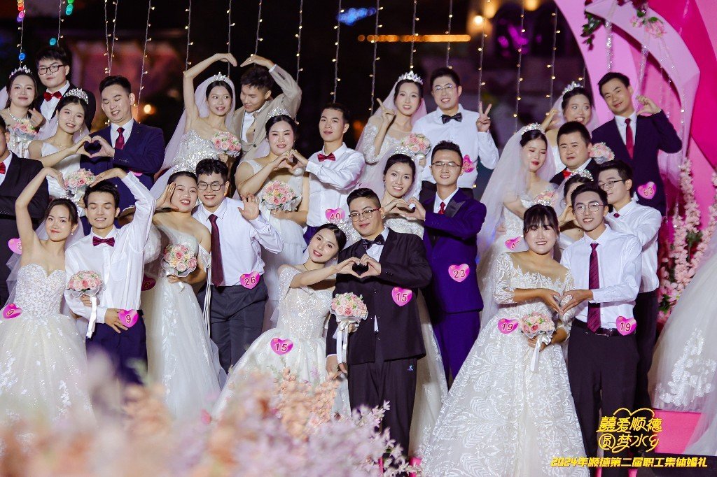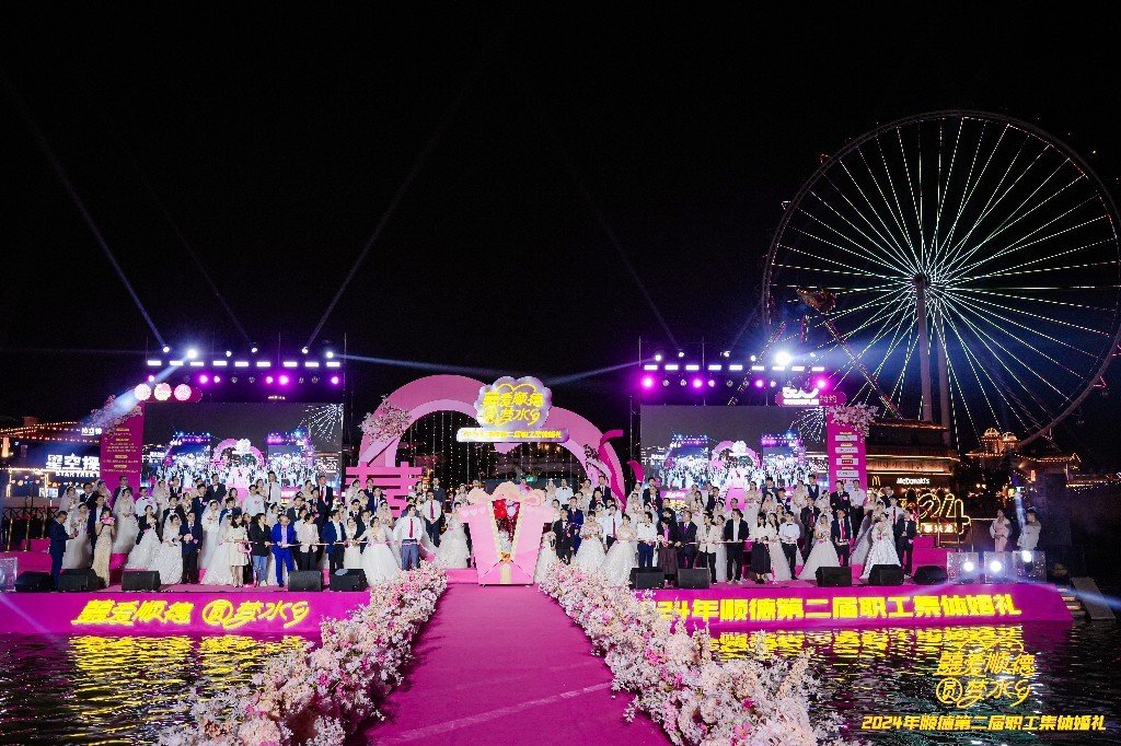 顺德第二届职工集体婚礼由佛山市总工会指导,佛山市顺德区总工会、共青团佛山市顺德区委员会、佛山市顺德区妇女联合会主办,顺德区各镇(街道)总工会、系统工委会协办。活动旨在让来顺德工作的人才感受到家的温暖,推动形成爱才敬才、留住人才的良好氛围。今年,顺德区总工会继续发挥“娘家人”作用,为每对幸福眷侣精心准备了多项福利,确保幸福眷侣们的婚礼仪式感满满。通过策划具有顺德文化特色的婚礼仪式,顺德区总工会成功将浪漫氛围推向了新的高度,使众多职工在这座充满温馨与浪漫的城市中,深刻感受到了幸福,共同分享了喜悦,并最终拥抱了属于他们的幸福时刻。
