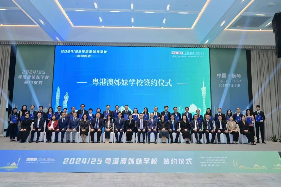 今年是粤港澳“姊妹学校”缔结计划实施20周年。11月21日,2024/25学年粤港澳“姊妹学校”签约仪式在横琴粤澳深度合作区举行,来自粤港澳三地近180所中小学校成功缔结为91对“姊妹学校”。至此,粤港澳“姊妹学校”增加至1546对,占内地结对数超一半。