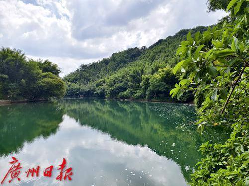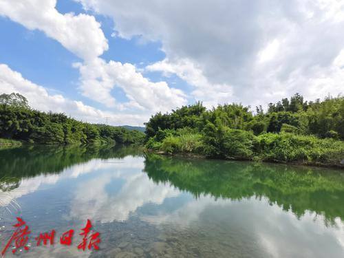 流溪河清澈的江水和两岸美丽的风景形成一幅美丽的画卷。