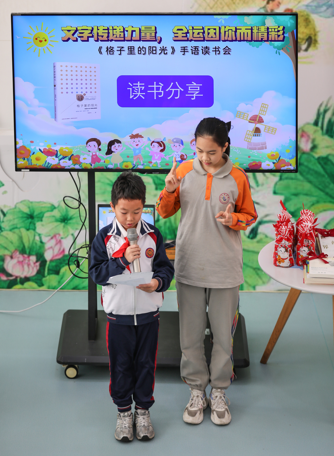 “以书会友,沟通无碍”。华阳小学的学生们在学习手语知识后,运用手语向听障儿童问好,互交朋友,互赠书本,书是他们之间沟通的桥梁,此刻,“残健融合”具象化了。