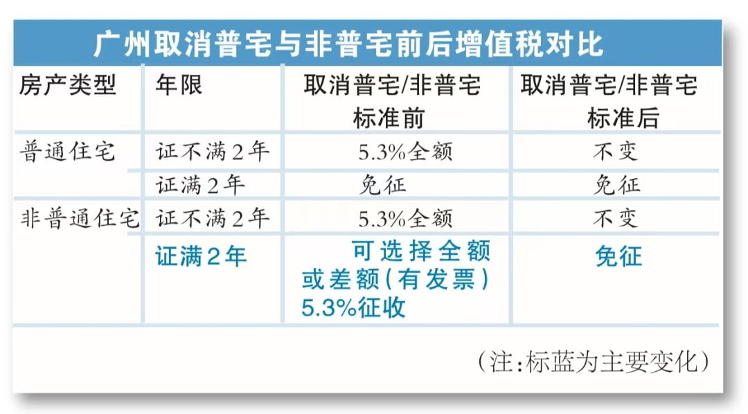 原本非普通住宅在二手交易时需要缴纳一笔5.3%的增值税,有中介人士向记者表示,这是二手交易环节各类税费之中比例最高的,在取消普通住宅与非普通住宅标准后,只要房产证满两年,这笔税费可直接减免。
