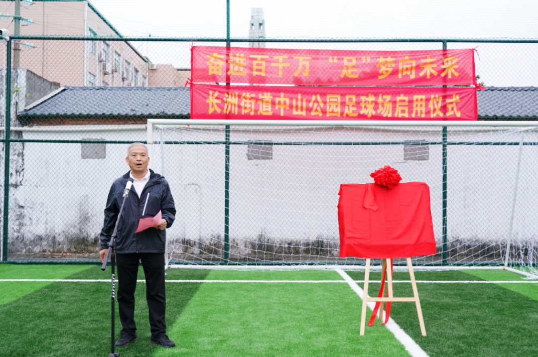 “我们相信,随着足球场的开放,将有更多足球爱好者在这里挥洒汗水,追逐梦想;同时,也会吸引更多家庭和朋友参与到足球运动中来,推动这里成为群众健身锻炼、交流互动的新平台,成为展示长洲街道精神风貌和体育风采的新窗口。”长洲街道人大工委主任黄维雄在启用仪式上致辞道。