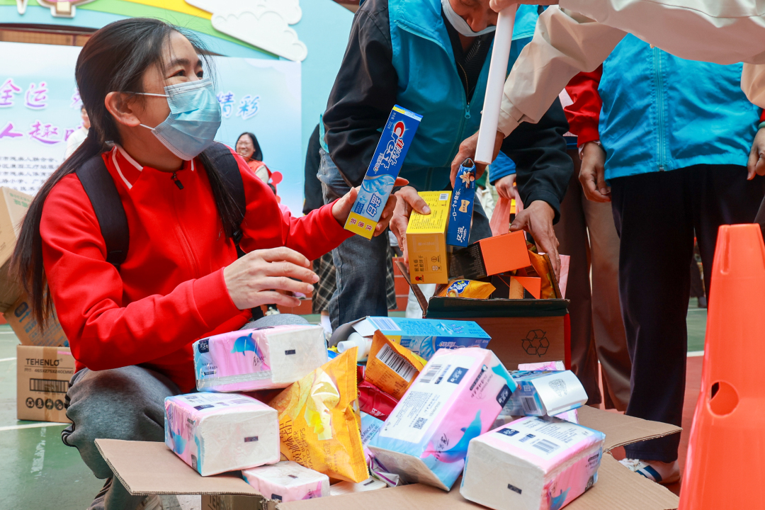 在比赛中,来自广州明星舞蹈队的志愿表演者们还为观众献上啦啦队舞蹈,为比赛增添了更多的欢乐与活力。随后,“勇攀甜蜜峰”竞赛更是将现场气氛推向了高潮。运动员们积极冲向“甜蜜峰”,仅能用手抓取“甜蜜”物资包,限时10秒后返回自己区域,趣味十足,让观众们捧腹大笑。