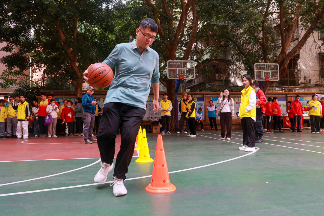 接下来,篮球障碍赛赛场也气氛热烈。运动员们需操控篮球巧妙绕过赛道障碍物,接力完成挑战。赛场上,选手们全神贯注、目光坚毅,拍球穿梭于障碍之间,与篮球融为一体。
