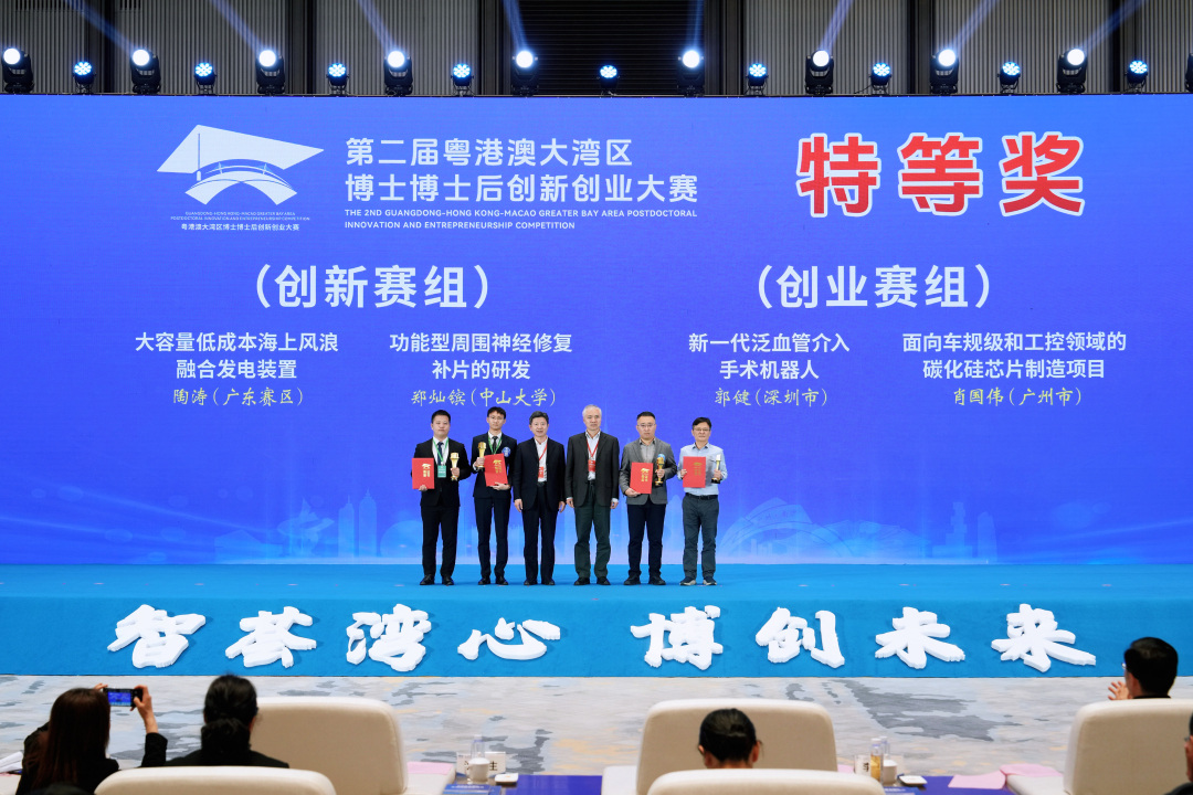 获得创业赛特等奖的项目是新一代泛血管介入手术机器人。“在介入机器人赛道,知识产权数我们做到了全球第一。”项目牵头人郭健表示,,新一代泛血管介入手术机器人,是爱博合创公司针对“心、脑、外周”血管介入临床中“手术质量受限于术者经验、医生个体的手术量效率瓶颈、辐射和负重威胁医生健康、医疗资源严重不平衡”四大问题,独创的先进介入机器人平台,拥有超过500项的知识产权,其中65%以上是发明专利和海外专利,目前首个产品已经走向市场,企业正在进行海外布局。“中国在介入机器人赛道有望实现引领全球的目标,打造高端医疗器械领域的中国名片,守护心脑血管患者人群的生命健康。”作为扎根大湾区的企业,郭健表示,这里创新创业氛围浓厚,大赛提供了很好的平台,让更多医疗机构、投资机构了解项目,链接更多资源,推动介入机器人产业快速发展。