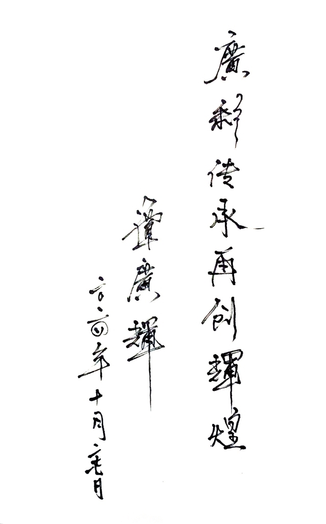 谭广辉为专栏题字:“广彩传承再创辉煌”。