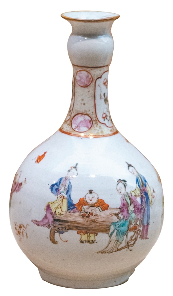 清雍正广彩人物纹长颈瓶