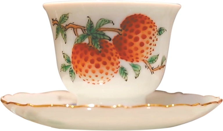 谭广辉创作的广彩茶具“荔枝杯”