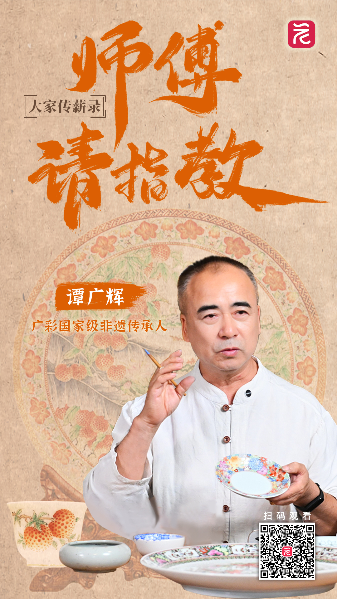 谭老师从业四十余载,坚持继承发扬广彩文化和技艺。他用自己的经历告诉我们,非遗不应只停留在历史中,更要通过实践创新将其传承下去,让它在我们的心中生根发芽,在新时代里焕发出新的生机与活力。