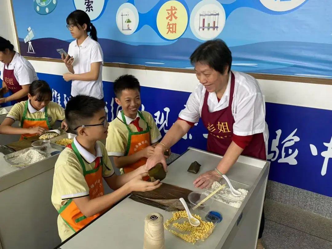 通过经过一道道严谨的工序,一只只香气四溢的波罗粽在同学们手中诞生,大家的脸上洋溢着满满的成就感与自豪感。