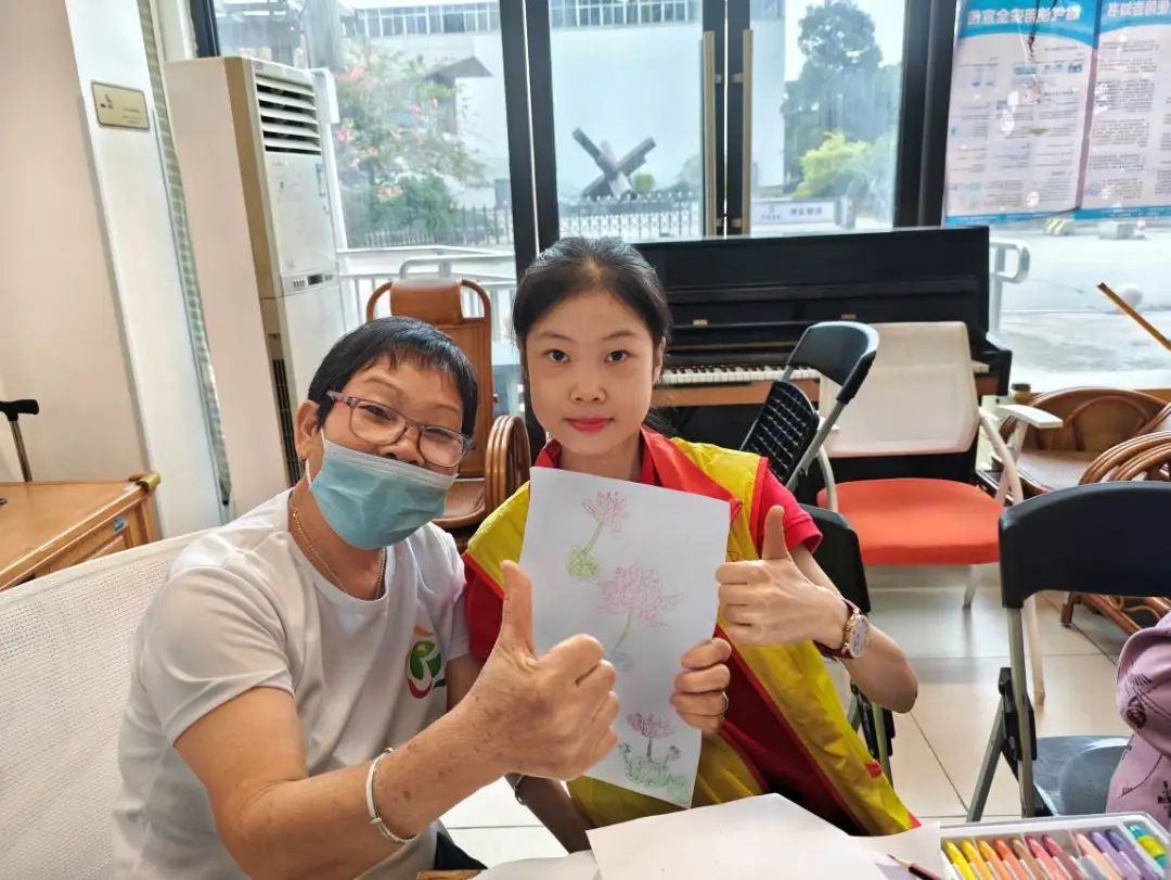 通过绘画,长者们不仅能锻炼手眼协调能力,还能感受艺术的魅力。有长者表示,平时不怎么穿戴颜色鲜艳的衣服和首饰,这次活动,可以用鲜艳的色彩表达对生活的热爱,感到开心和满足。