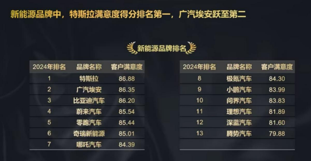 “用户体验”是多维的,既包括购车时的愉悦感,也涵盖汽车生命周期的各个阶段,尤其是售后服务。而在产品日益同质化当下,提供更优的售后服务成为车企新的核心竞争力。近日,中国汽车维修行业协会发布了2024年汽车售后服务客户满意度《CAACS卡思调查》。结果显示,特斯拉、广汽埃安、比亚迪排名前三。其中,广汽埃安成为新能源车主满意度中国第一品牌。
