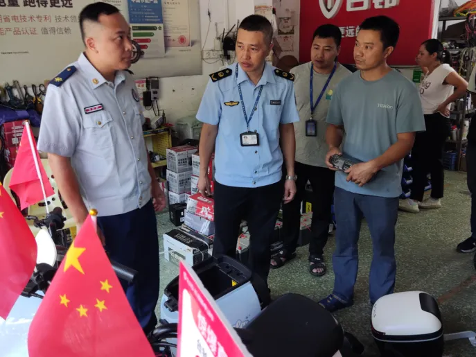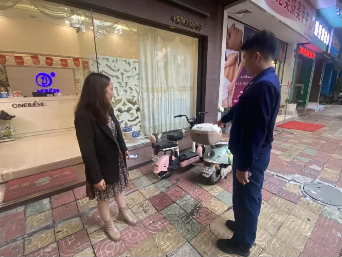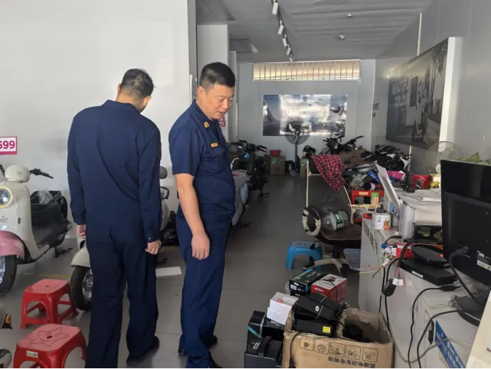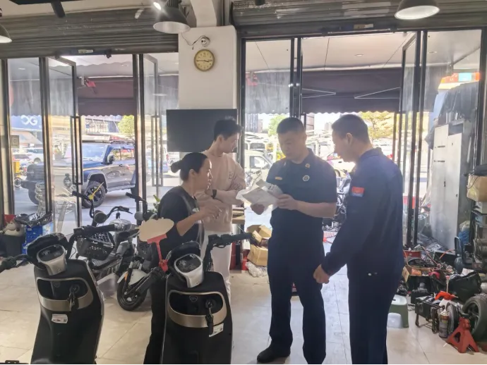 行动中,检查组深入辖区电动自行车销售点,通过查看销售店铺台账,检查是否存在擅自改装原厂电气配件、更换大容量蓄电池等违法违规行为,检查在售电动自行车的合格证明、强制性产品认证信息等与实际是否一致,以及是否有出售无证或伪造认证证书等来源不明的产品。同时,要求电动自行车销售点负责人落实主体责任,坚决杜绝“解限速”“增容量”等非法改装行为,并做好电动自行车挂牌登记宣传,让消费者全面了解挂牌登记流程及挂牌登记的重要性。