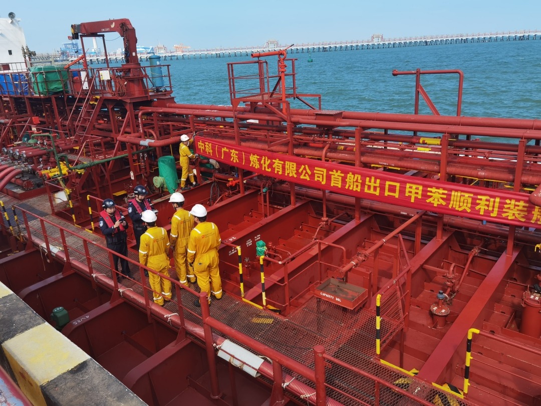 11月26日14时,在湛江边检站民警的护航下,载运1000吨甲苯的中国香港籍“发行者”轮缓缓驶离码头。这也标志着中科(广东)炼化有限公司甲苯产品首次走出国门。