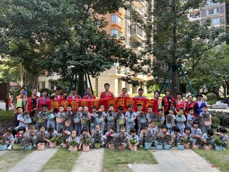 10月,芳彩社区党委组织“绿美新生活,重阳敬老行”活动,邀请辖区老党员和凯粤湾幼儿园小朋友共同参与。通过重阳节以老带小活动,培养幼儿园小朋友尊老、爱老的优良品质,并让社区老年人切实感受到社区的温暖和关怀。
