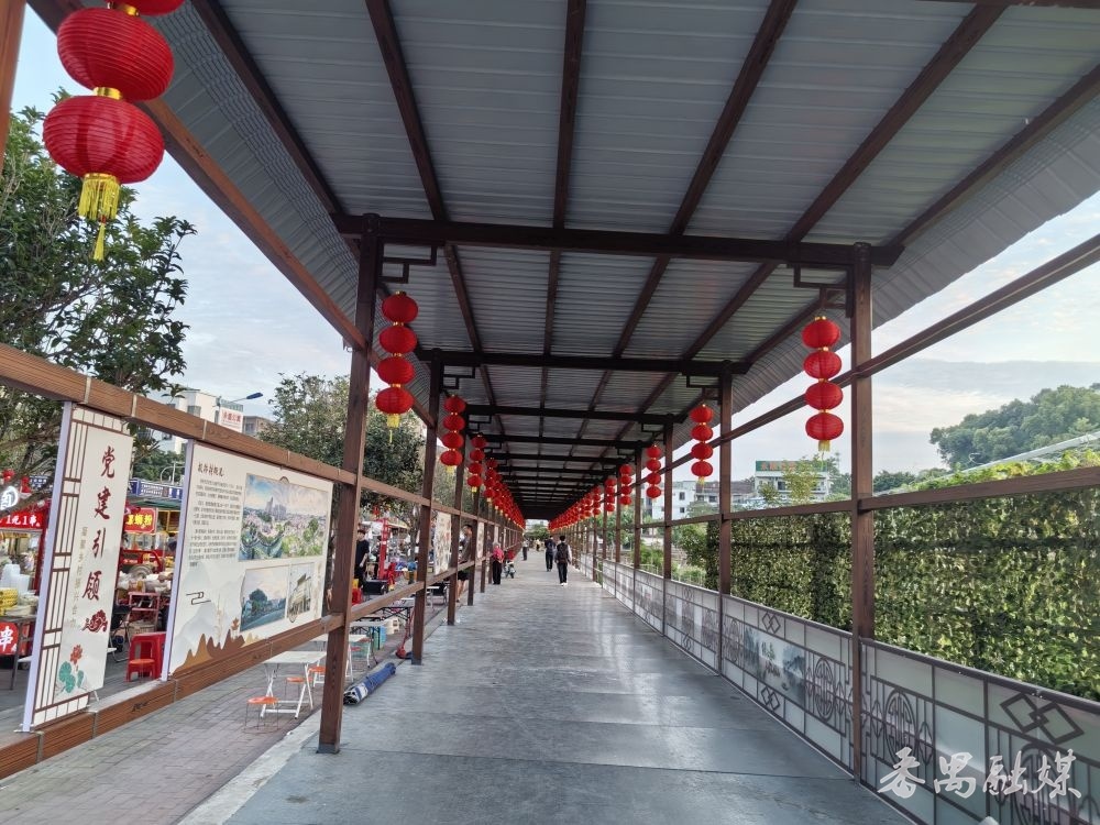 与此同时,板桥村还打造了一条观光文化长廊。这条长廊不仅成为了村民悠闲散步和观光美丽田园的平台,还通过展示党建引领乡村振兴、数字化基层治理、提升人居环境、产业发展、文化赋能等五个板块的内容,展现了板桥村的“和”与“美”以及村民的幸福感。长廊两旁的摊贩安置区也进行了规划管理,既方便了村民的生活需求,又增加了村集体的收入。