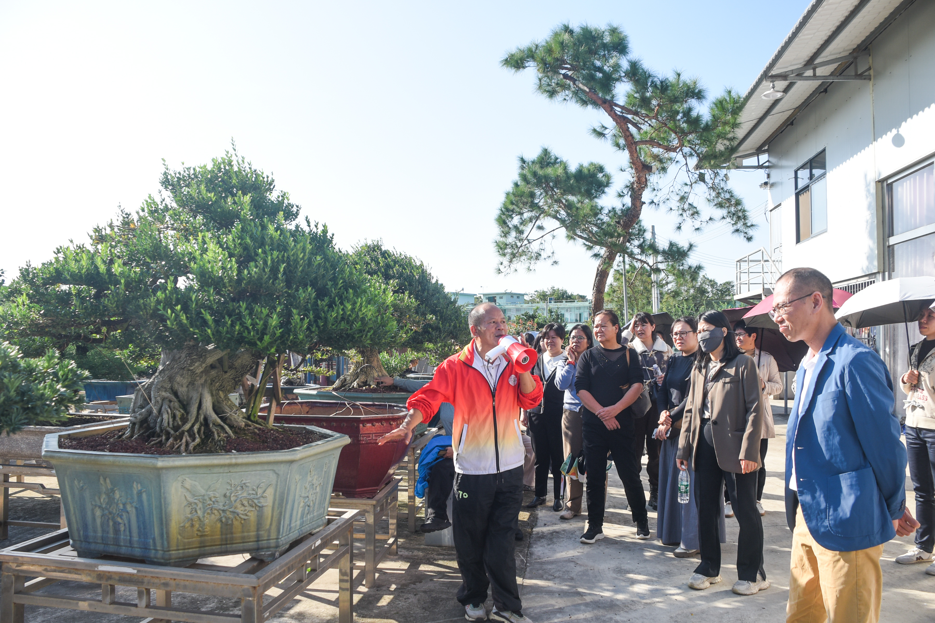 一行人来到美丽庭院、盆景企业学习。