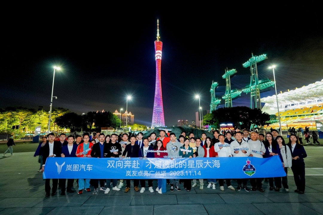 (2023年广州车展举办前夕,全国岚图车主主动发起“点亮广州塔”行动。)