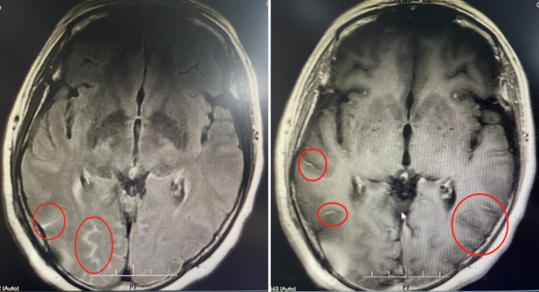 家住河源的梅姨(化名)今年51岁。大约在中秋节前后,梅姨自觉有些感冒发烧,过后便开始持续头痛。起初,家人以为她是偏头痛发作,但梅姨服用多种止痛药都不起作用,“我一天就吃了六颗止痛药,还是痛。”持续头痛数日后,梅姨决定到当地医院就医。在当地医院,她被诊断为颈椎间盘突出。