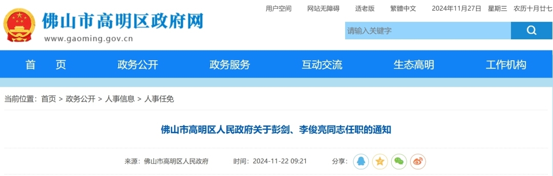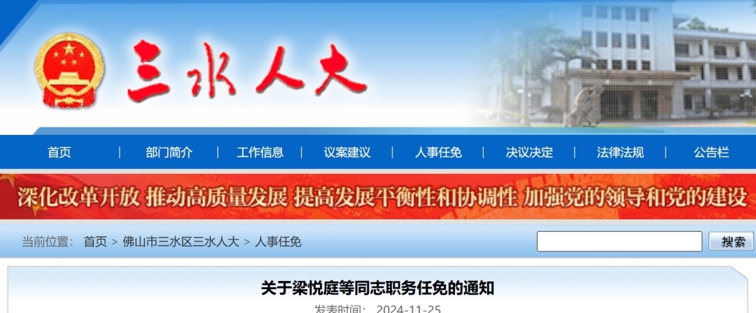 近日,佛山市顺德区人大官网、高明区政府官网、三水区人大官网发布最新人事任免通知。