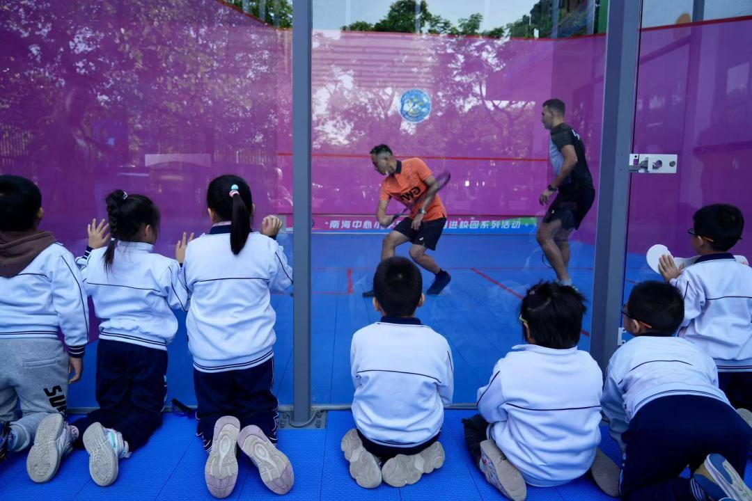 在开馆仪式当天,南海中心小学第一批上壁球班的孩子向大家展示了属于他们的壁球公开课。只见孩子们走进由金属和玻璃打造的壁球馆,在教练的指引下认真完成跑动、挥拍、击球等动作,尽情体验壁球运动的乐趣。一位刚体验完的孩子告诉记者:“我以前没听过壁球,现在觉得挺好玩的。”