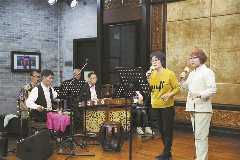 翠园乐社正在广东音乐馆演出,成员轮番上台,个个唱功不俗。