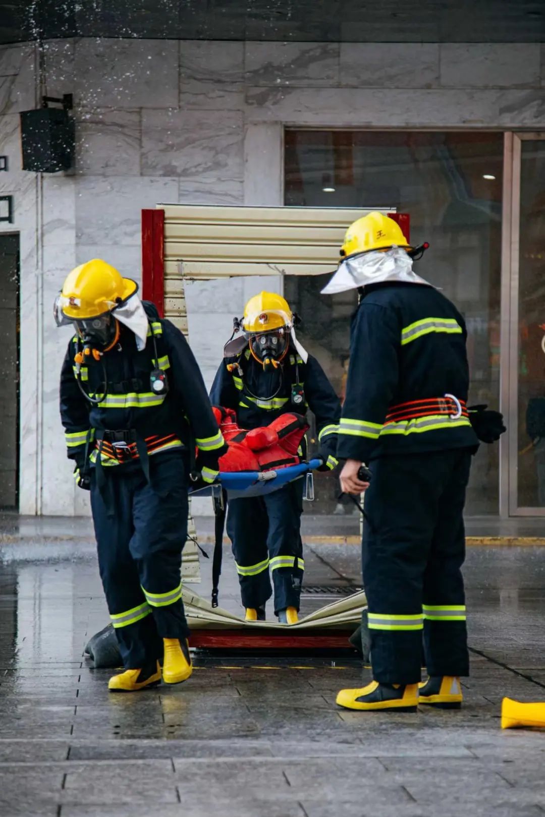 在浓烟滚滚的模拟火场中,消防队员们身着战斗服,手持破拆工具、灭火器和水带,迅速控制了火势,救出被困人员,展现了出色的专业素养和应急反应能力。最终,在众人的共同努力下,火势被成功扑灭,人员安全疏散。