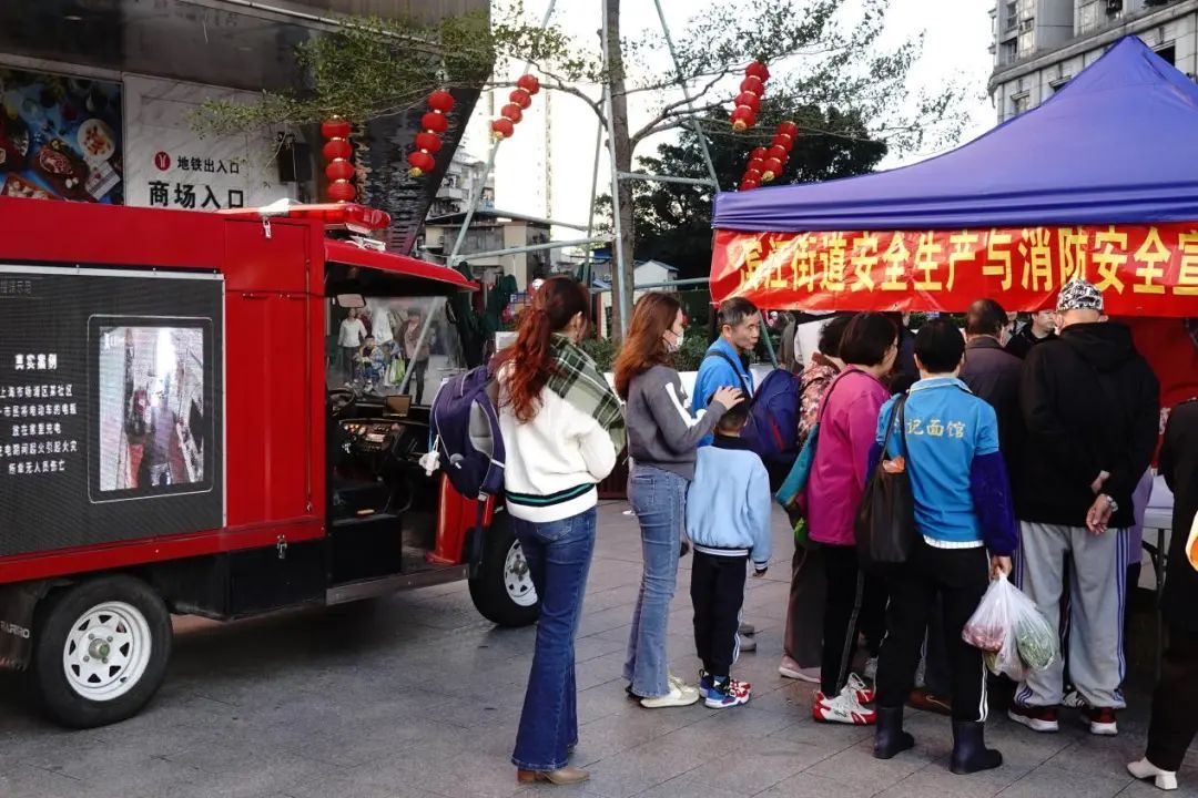 消防知识宣传摊位上摆放了各种消防安全资料和宣传品,吸引了众多居民前来咨询和学习。