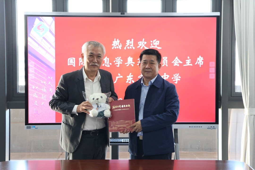 国际信息学奥林匹克竞赛委员会主席陈顺德(左)与广东实验中学党委书记全汉炎(右)
