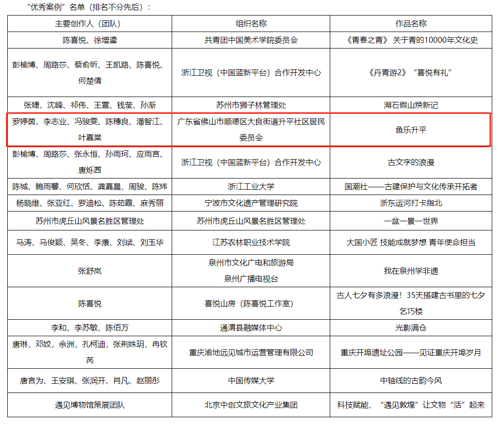 近日,联合国教科文组织亚太地区世界遗产培训与研究中心公布了让文化遗产“活”起来微视频征集活动入选案例,其中,佛山市顺德区大良街道升平社区的《鱼乐升平》从全国各地147个申报案例中脱颖而出,成为“优秀案例”之一。大良街道称,这标志着“大良鱼灯”在非物质文化遗产保护和活化利用方面获得了国际认可。