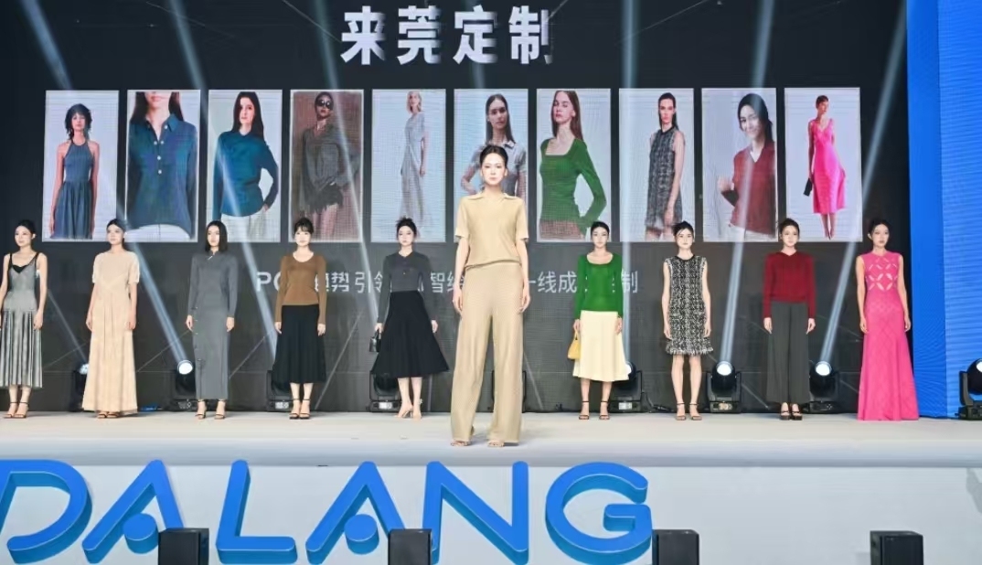 继去年推出“大朗优选”品牌后,在日前举行的织交会上又新鲜发布了“来莞定制”品牌,巷头社区、设界集团、凌迪公司和智能针织软件公司强强联合,共同签订了《大朗镇毛织产业时尚化、数字化、智能化战略合作框架协议》,将数字化设计和数字人3D模拟技术融入定制服务。