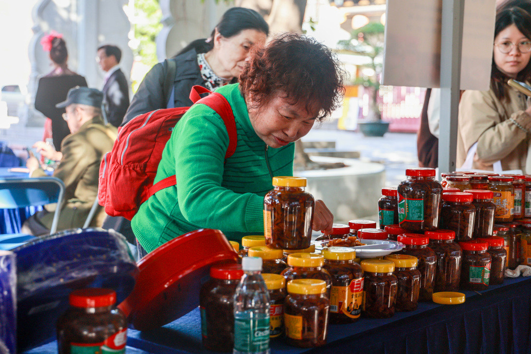 在“银发+惠农”展区,来自霞山区、赤坎区、遂溪县及增城区小楼镇的对口帮扶企业带来了80多款优质生态农产品和10多种地方风味小吃,以及此次活动的热门项目——赤坎簪花,吸引了众多长者前来体验当地别具特色的地方风味和文化,感受地理和历史变迁中的风雅情怀。