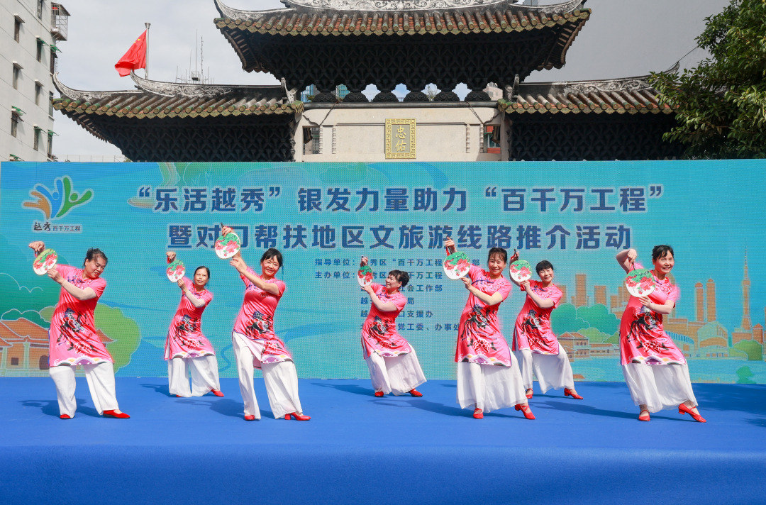 11月28日,由越秀区“百千万工程”指挥部办公室联合区委社会工作部、区民政局、区对口支援办、北京街道办事处共同举办的“乐活越秀”银发力量助力“百千万工程”暨对口帮扶地区文旅游线路推介活动在北京街城隍庙广场举行。活动旨在营造社会力量广泛参与“百千万工程”的浓厚氛围,激发社会力量特别是银发群体的活力,推动旅游业与千行百业相互赋能,共同谱写两地文商旅融合发展大文章,推动“百千万工程”落细落实。