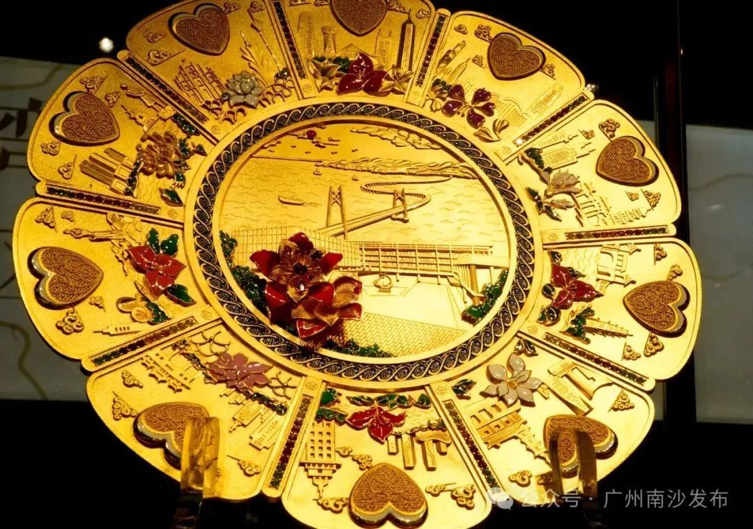 在“湾区同心”的创作中,需经历压铸、精雕、执模、焊接等一系列工艺流程,而最为关键的工艺加工步骤是花丝、镶嵌和珐琅,花丝工艺以其细腻和复杂著称,工匠们需要将金丝编织成精美的图案,仅仅这一步就用了800段5000毫米长的金线。