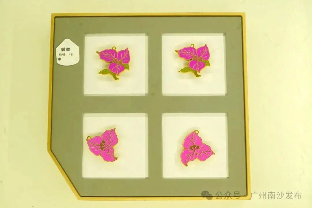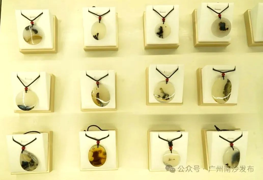 从原始的宝石到款式多样的工艺制品,博物馆里通通都有。博物馆的二楼为文创区、珠宝销售区,三楼、四楼则是临展区,将不定期更新展出。在文创区和珠宝销售区,售卖的作品包括个人设计工作室的戒指、耳环、项链、发簪、手链等首饰、“湾区同心”系列胸章、“羊城八景”书签等文创。