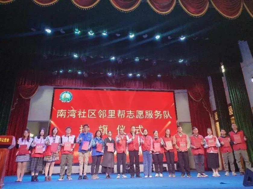 近日,南湾社区举办“邻里帮志愿服务队”授旗仪式暨志愿活动,用实际行动重拾邻里温暖,推进基层社会治理。