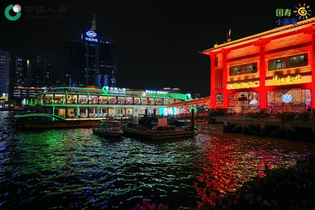 本次活动特别选择落地广州人民艺术中心,鼓励参与家庭与孩子们深度参观广州人民艺术中心丰富的美育展览,沉浸式感受艺术的魅力。在当晚,近百组家庭更是在天字码头登上中国人寿游船夜游珠江,体验夜幕下的城市之美,为日后的艺术创作积累更丰富的素材。