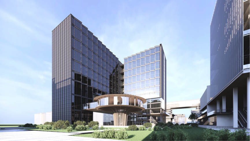 酒店项目位于园区3号地块的创享园,引入高端品牌岭南东方酒店的领先标准、盈利模式、运营体系及专业管理团队,以精细、体贴、人性化的岭南特色管理和服务文化,共同研究新需求,研发优质新产品,满足消费者对美好生活的新期待。酒店以“东方韵味、自然写意、宴乐悠扬、亲和友善”的品牌特质,传承东方文化经典,按五星级标准打造集文化休闲、美食盛宴、科技应用、会议培训于一体的高端商务会议与城市休闲目的地酒店。