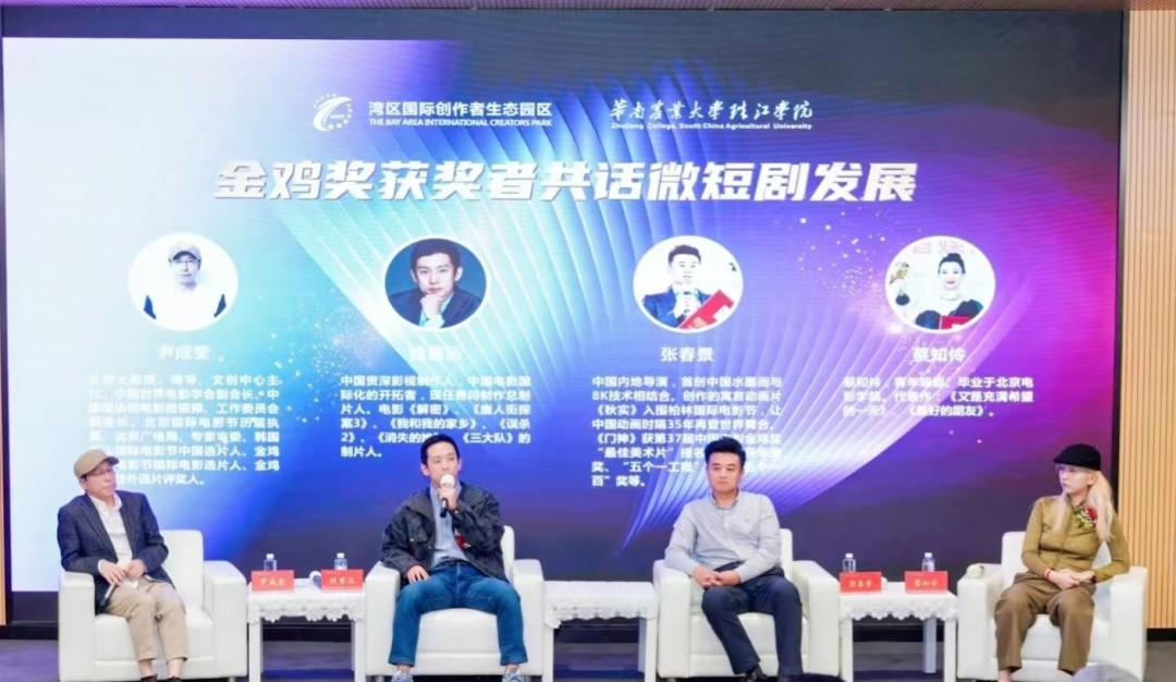 论坛的最后环节,尹成奎、中国资深影视制作人钱重远、内地导演张春景、编剧蔡知伶等金鸡奖获奖者共同探讨微短剧发展,他们从艺术创作、行业实践等不同角度出发,分享了各自的经验与见解。