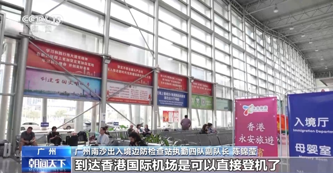 广州南沙出入境边防检查站执勤四队副队长 陈锦莹:现在南沙客运港每天是四进四出,共八个航次,可以行李直挂,到达香港国际机场可以直接登机。