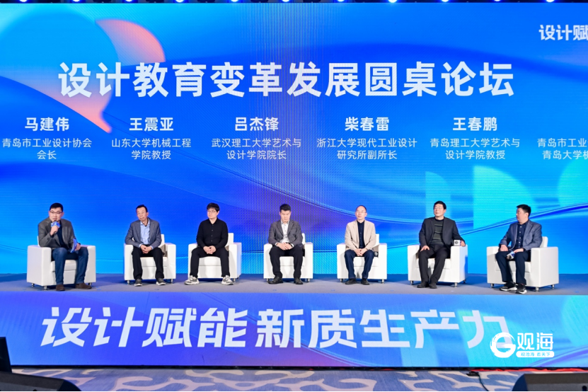 作为培养未来设计师和创新者的摇篮,设计教育的目标、内容和方法正随着科技的飞速发展发生着深刻变化。在圆桌论坛环节,清华青岛艺术与科学学院创新研究院主管李玄白和武汉理工大学艺术与设计学院院长吕杰锋,浙江大学现代工业设计研究所副所长柴春雷,山东大学机械工程学院教授王震亚,青岛理工大学艺术与设计学院教授王春鹏,青岛市工业设计协会会长马建伟,青岛市工业设计协会副会长兼秘书长、青岛大学机电学院工业设计系主任赵博,结合“设计教育变革发展”主题,围绕现阶段设计教育领域面临的挑战、应对与变革等热点话题,共同探讨了设计教育发展的新机遇和新路径。针对如何通过教育创新来推动设计行业的持续进步,带来很多前瞻性、启发性的观点。