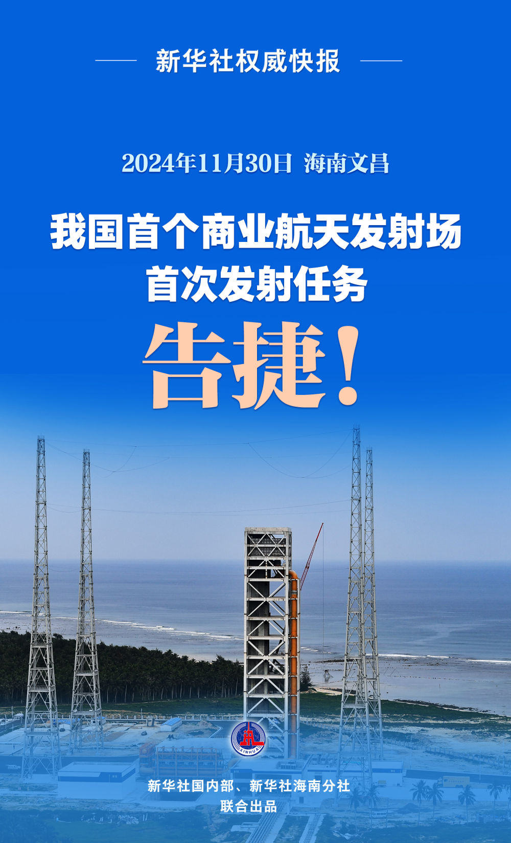 海南商业航天发射场是我国首个商业航天发射场。本次发射在二号发射工位完成,是海南商业航天发射场首次发射任务。