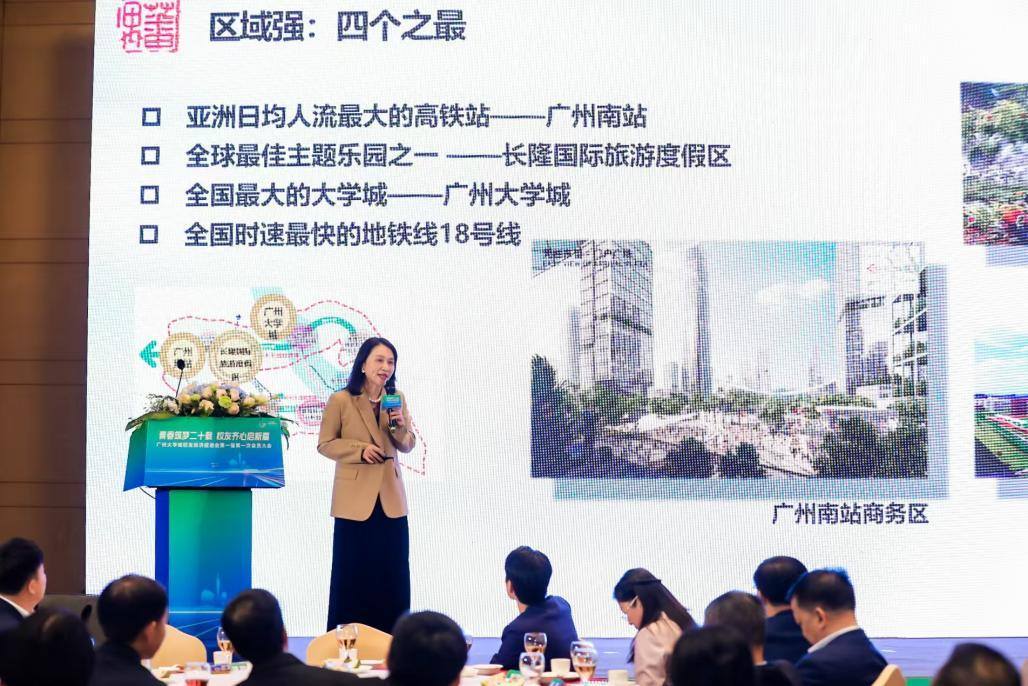 番禺区投资促进中心副主任缪莉向校友企业代表推介番禺,全面展示番禺区营商环境,发出“来番禺 正当时”英雄帖,欢迎更多社会英才回到广州大学城传经送宝,邀请更多校友企业了解番禺、深耕番禺,与番禺共谋发展、共创美好明天!