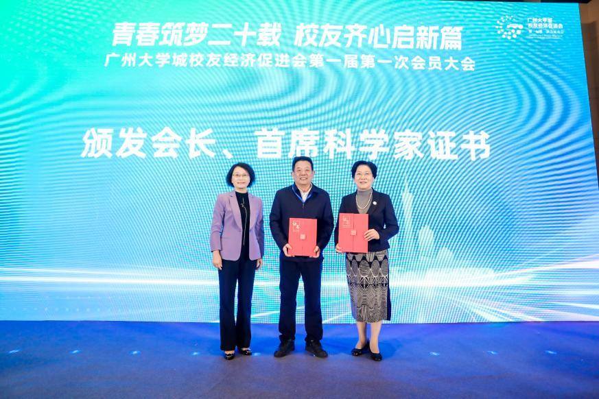 11月29日晚,广州举行大学城校促会校友交流会。会上为广东工业大学原党委书记陈新教授颁发首席科学家证书,为广州大学城校友经济促进会长、常务副会长、副会长、副会长兼秘书长、理事、理事兼秘书长颁发就职证书;为12所高校校友会负责人颁发“广州市番禺区大学城校友经济促进会优秀组织奖”,为校友企业代表颁发感谢状。番禺区对长期以来支持广州大学城建设发展、促进湾区教育事业蓬勃发展、推动区域经济向好向上的教育、科技、企业代表致以感谢。