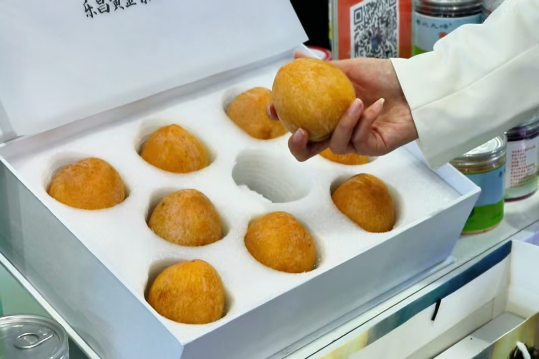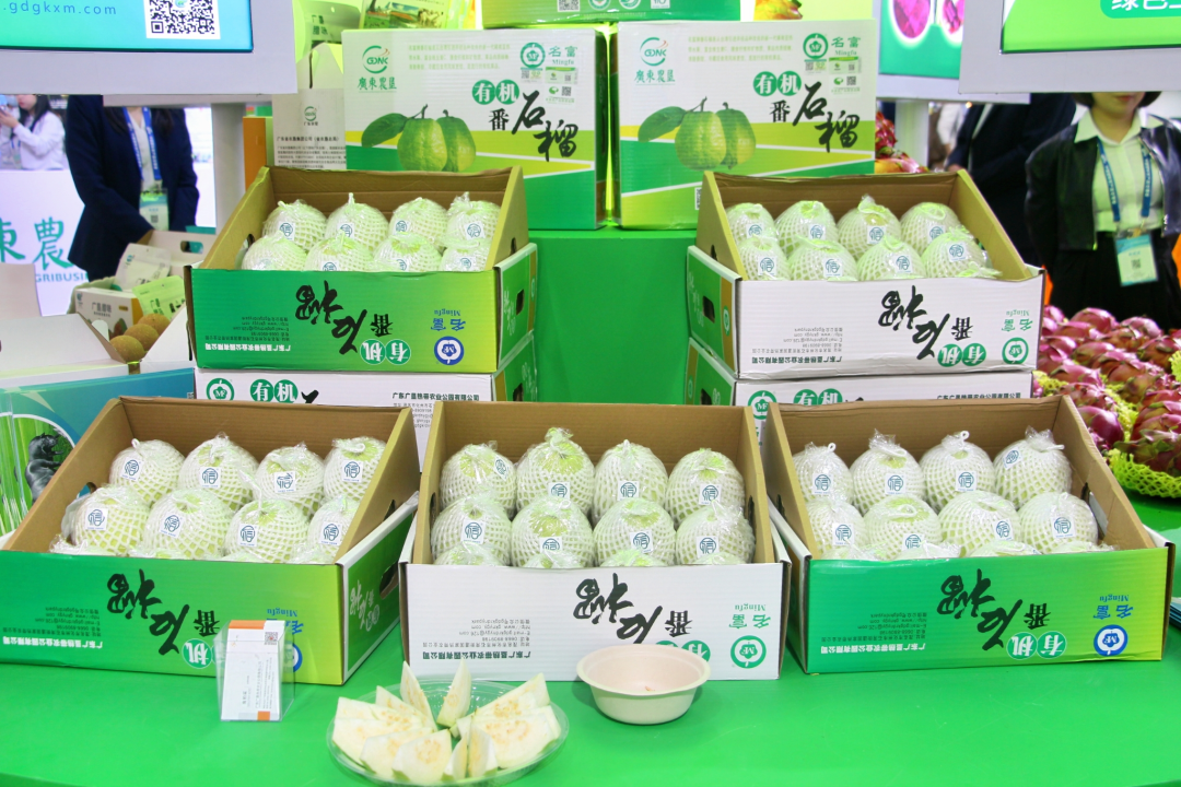 广东果农凭借现代农业科技的力量,成功创新并改良了众多独具特色的水果品种。例如,来自乐昌九峰镇的黄金奈李,在果农们科学精细的培育之下,黄金奈李色泽金黄,爽脆可口,清甜多汁。以其优质的品质远销法国、阿拉伯联合酋长国等国家,在世界上享有盛名。湛江金都系列百香果,是一款具有水蜜桃风味的百香果,有着“九分甜一分酸”的香甜口感。此外,番石榴展区的负责人除了向大家展示了珍珠番石榴这一珍稀品种,还介绍了一种独特的吃法——在番石榴上撒上少许的生姜糠和陈皮粉,别有一番滋味。
