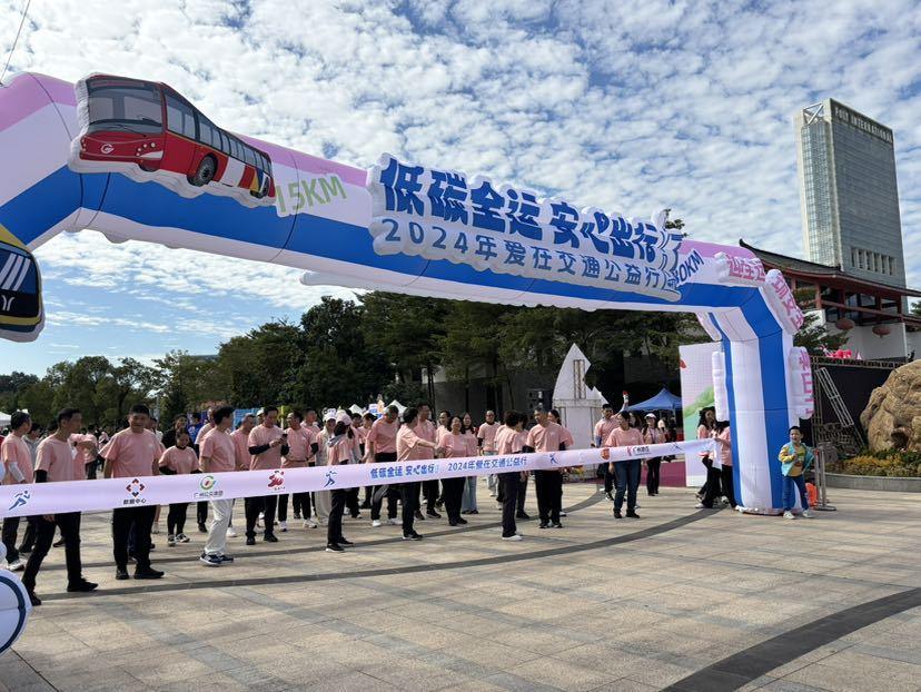 11月30日,2024年广州“爱在交通公益行”活动启动仪式在广州市水博苑举行。活动以“低碳全运 安心出行”为主题,围绕“喜迎全运、低碳出行、安全守护”三大核心内容开展,吸引了千余名市民参与,通过“打卡游览+低碳出行”的方式,学习应急安全知识,感受运动的魅力,共同为即将到来的十五运会加油助威。