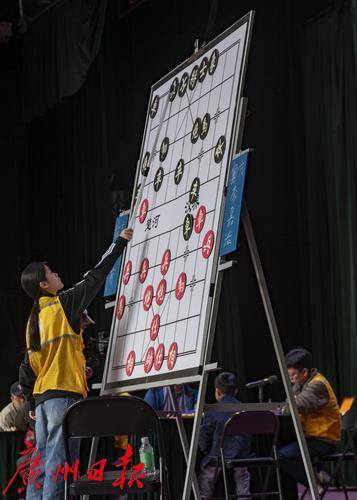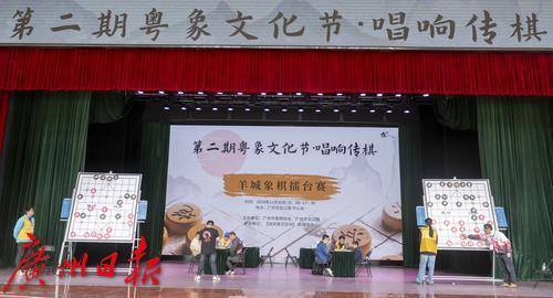 羊城象棋擂台赛在文化公园中心台上演,两个大棋盘让台下观战的棋迷实时掌握战况。