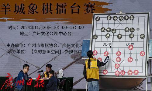 11月30日,一场特别的象棋擂台赛在广州文化公园中心台上演,羊城棋迷熟悉的挂着大棋盘高声唱棋的情景复现,引来众多象棋爱好者以及游客的围观。