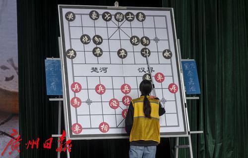 羊城棋迷熟悉的挂大棋盘高声唱棋的情景复现。